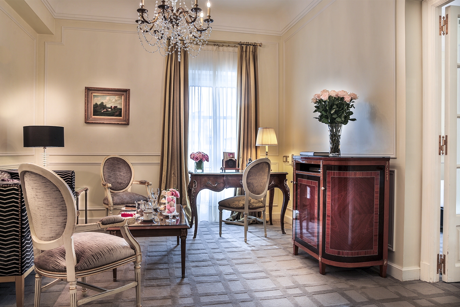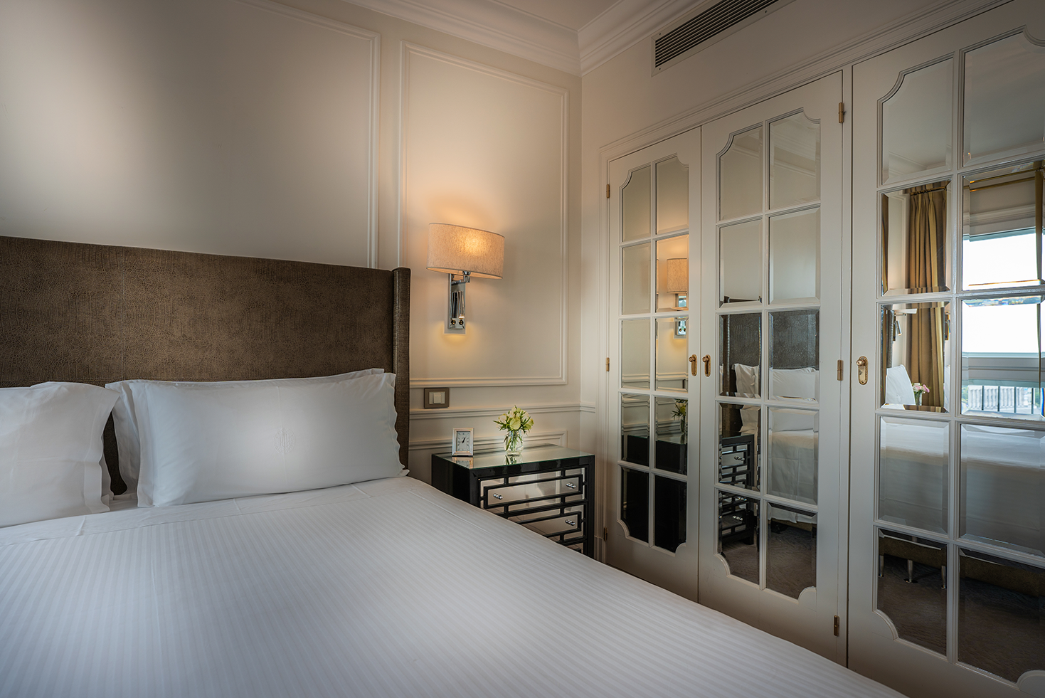 Charm and discretion. These suites offer the comfort of a bedroom and an independent living room, plus the quietness provided by the inner wing of the building. The modern French style stands out with elegant furniture and a delicate combination of textures that envelop you in the warm feeling of a Parisian apartment. The splendid bathrooms are clad in botticino marble and have a jacuzzi, an independent shower box, and amenities L´Occitane. It allows a third person to be accommodated at a preferential rate.
