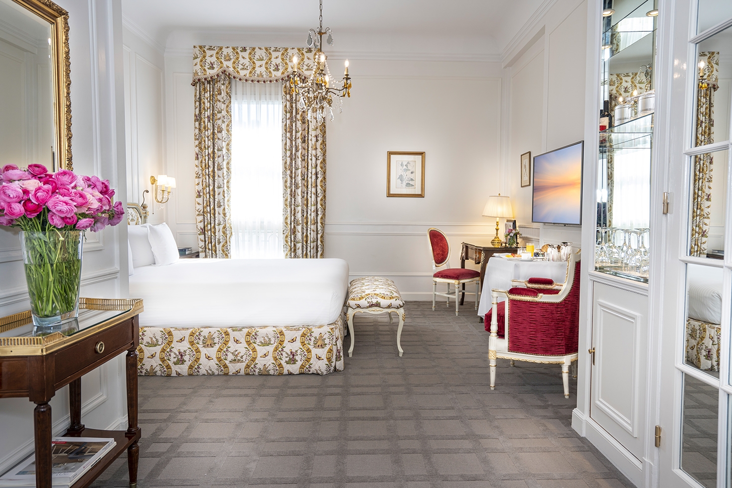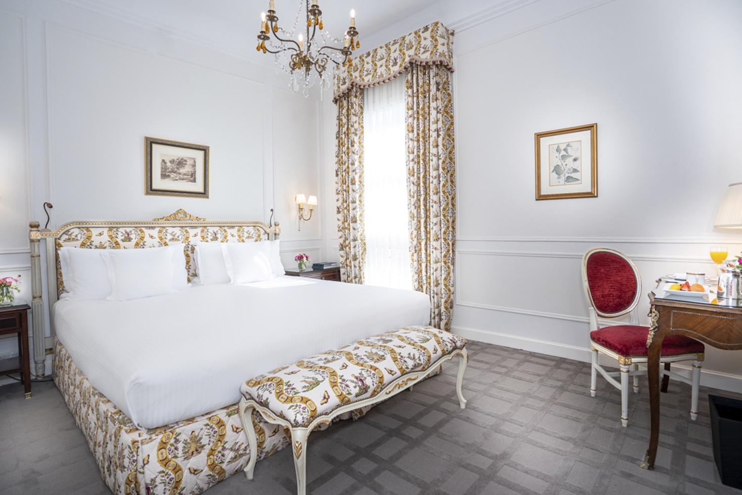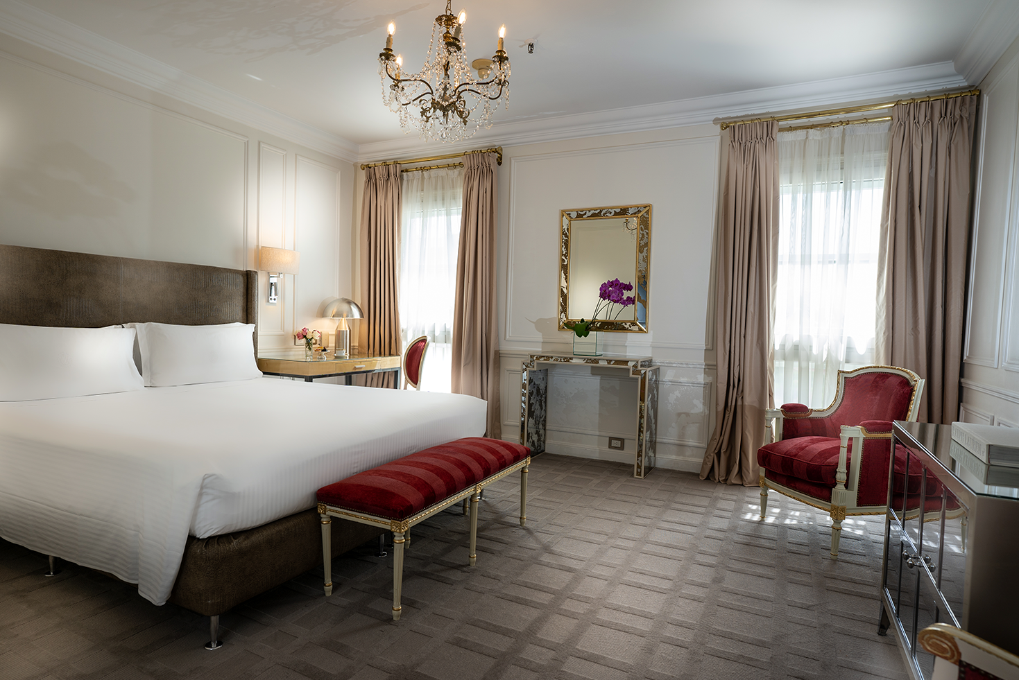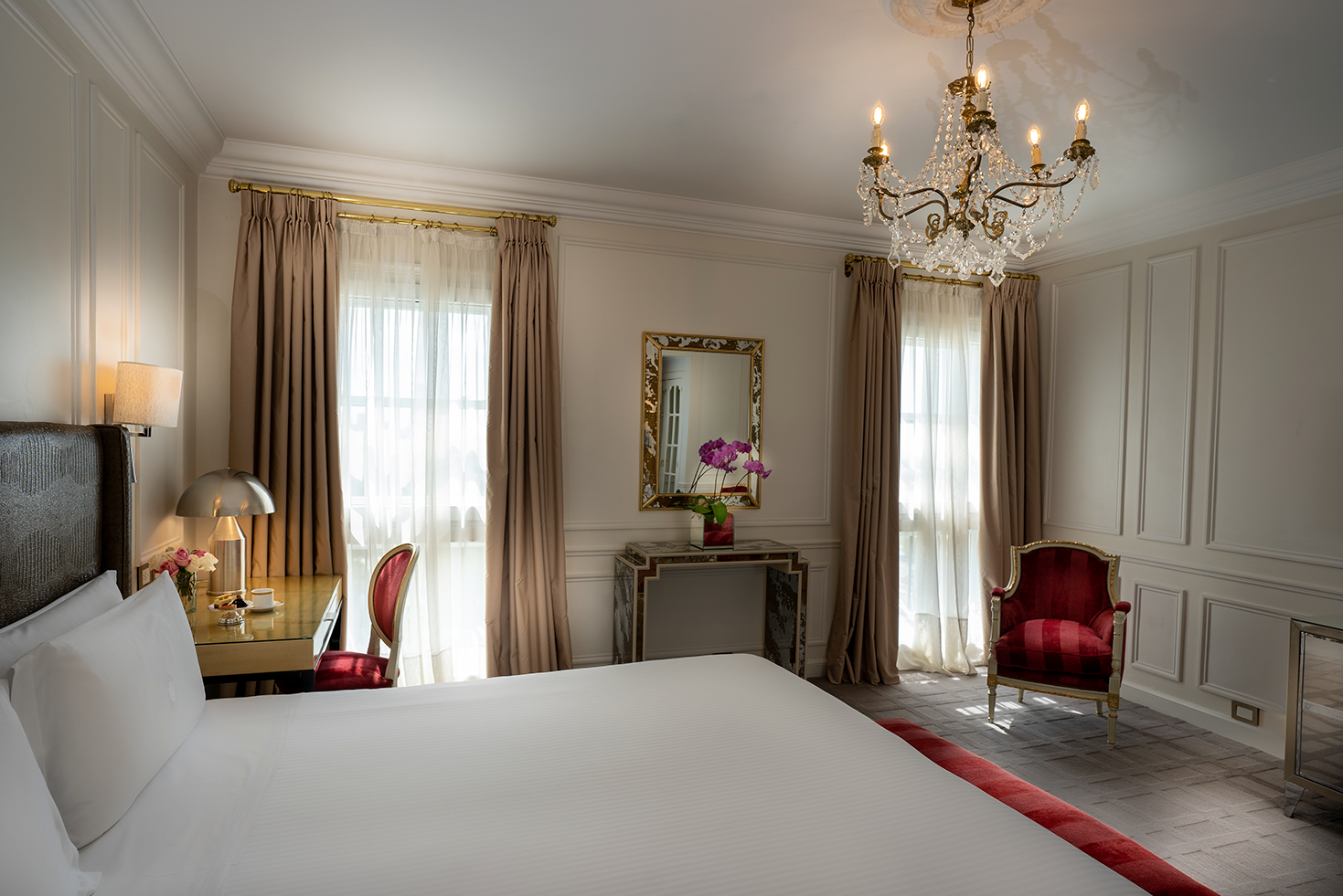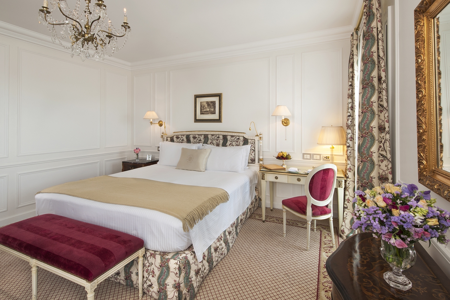 Ideal for business or leisure travelers, Palace Classic rooms, single or double use, are designed for maximum comfort. Modern French style and favorites for dimensions and tranquility offer a harmonious balance that perfectly matches the classic spirit with relaxed touches, providing a timeless, elegant atmosphere. The luxurious baths in Botticino marble have a jacuzzi, an independent shower box, and bathroom amenities L´Occitane.