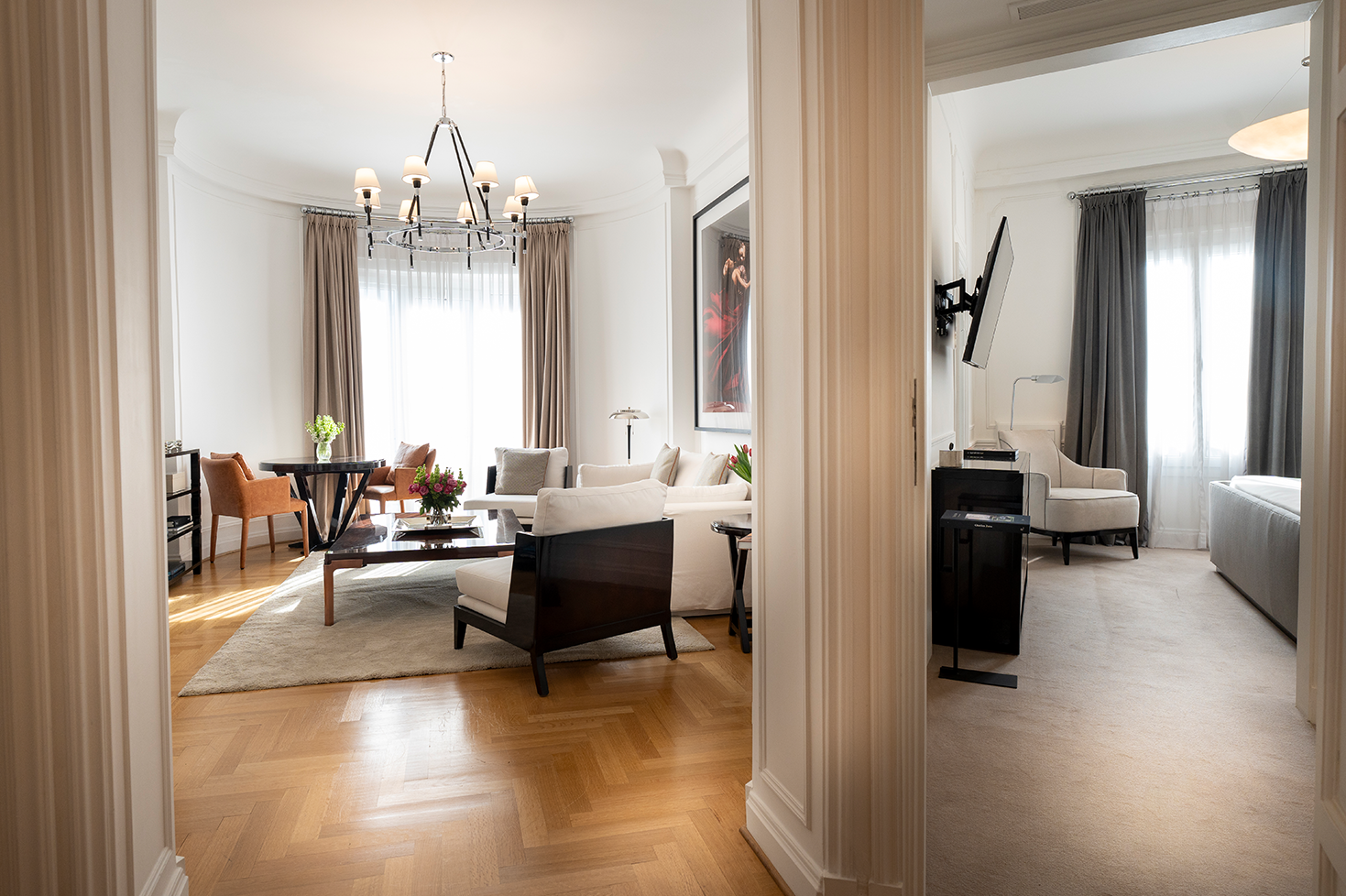 This apartment stands out on an upper floor for its clean and bright environment. It is adorned with furniture featuring elegant lines in perfect harmony with the timeless Alvear spirit.