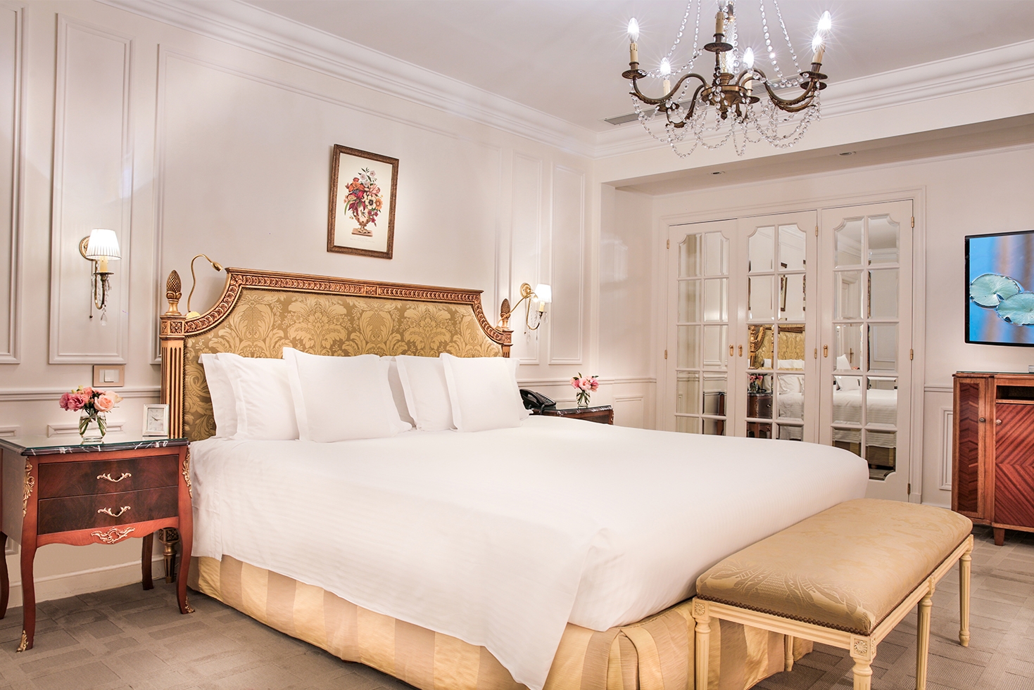 Spacious and bright, the Junior Prestige suites are located on the upper floors, giving guests beautiful views of the exclusive neighborhood of La Recoleta and the Río de la Plata. With the comfort of an integrated star area and equipped with the maximum comfort for rest, they capture the essence of a space of serene sophistication. The luxurious baths are clad in botticino marble and have a jacuzzi, independent shower box, and bathroom amenities L´Occitane.